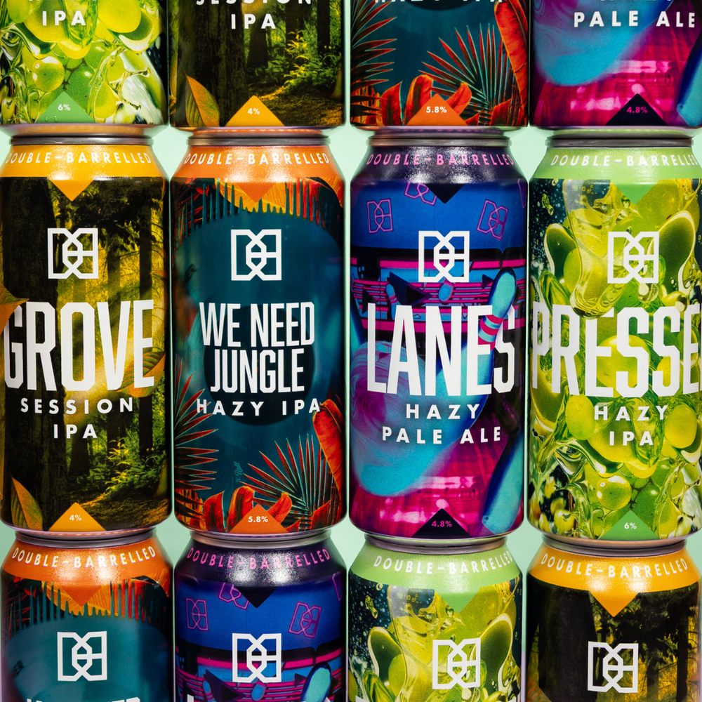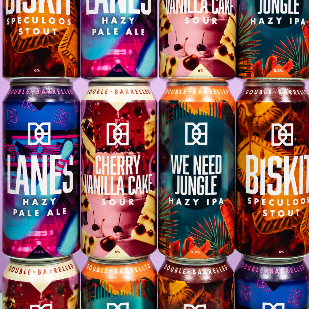 Double-Barrelled began when our co-founders Mike & Luci created their first branded beer as a wedding favour back in 2015. Post wedding, they set off on a year long beer adventure, backpacking over 84,000 miles across the world to find inspiration, unique ingredients and burgeoning trends in the world of beer.