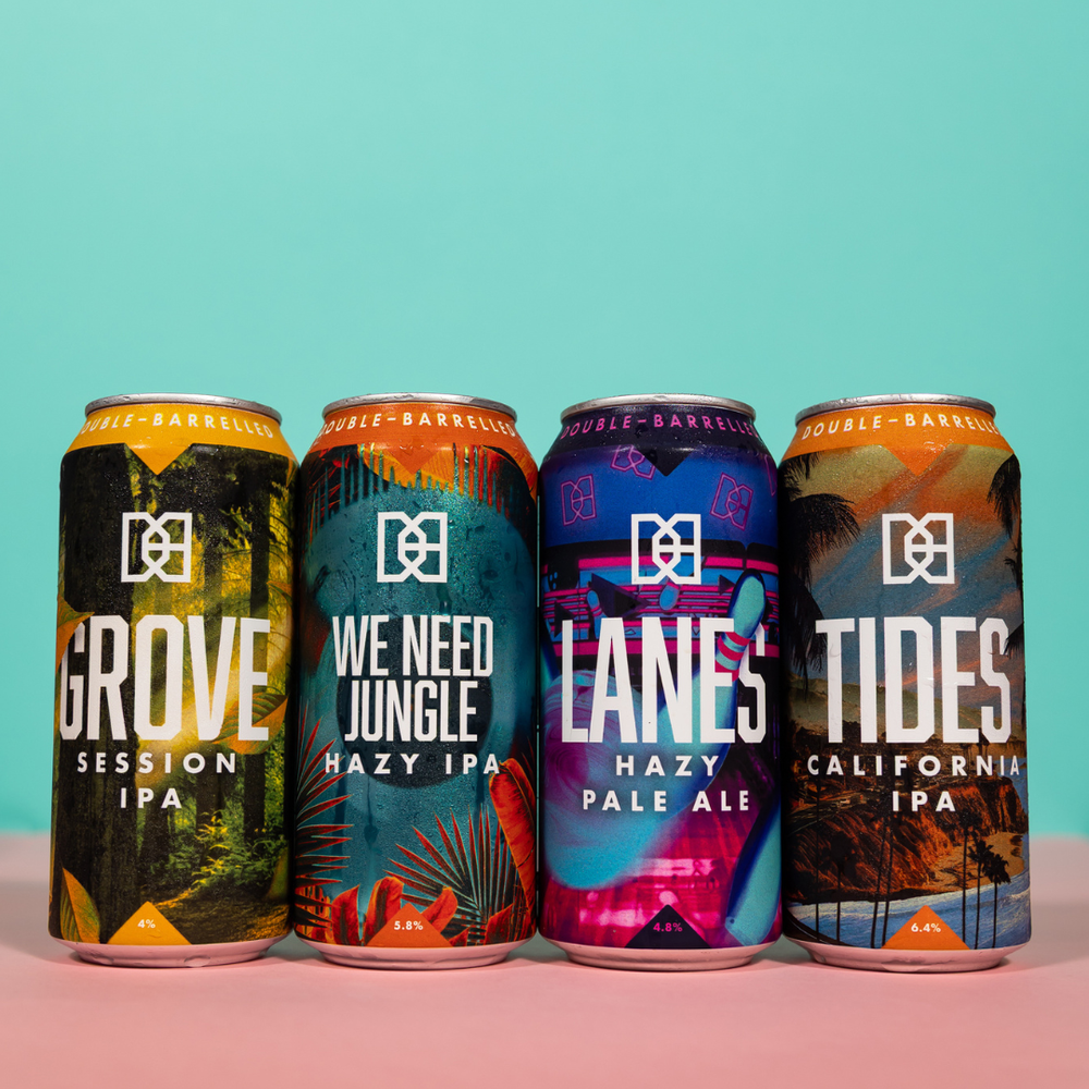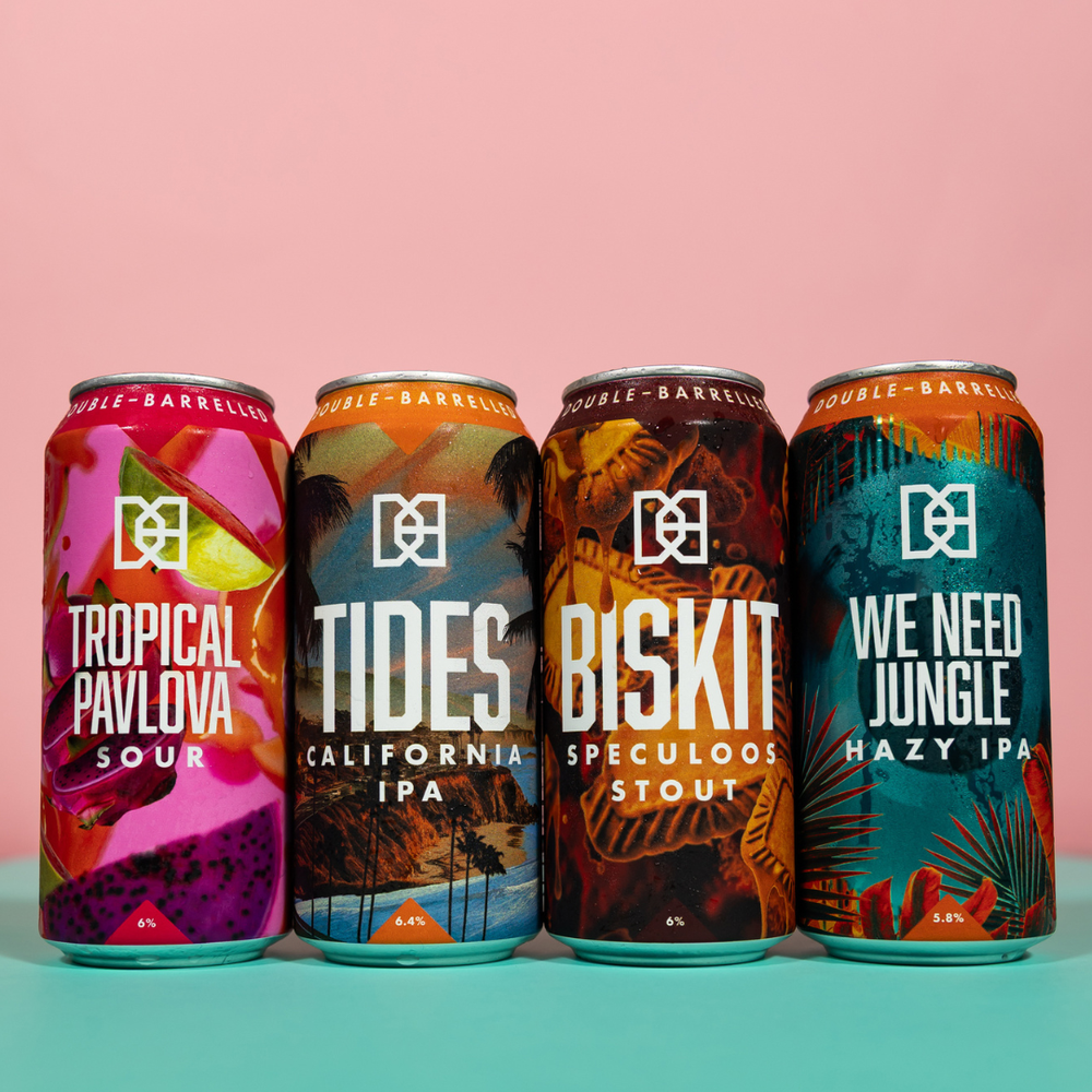 Double-Barrelled began when our co-founders Mike & Luci created their first branded beer as a wedding favour back in 2015. Post wedding, they set off on a year long beer adventure, backpacking over 84,000 miles across the world to find inspiration, unique ingredients and burgeoning trends in the world of beer.