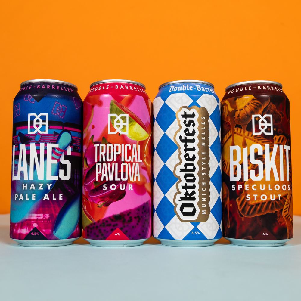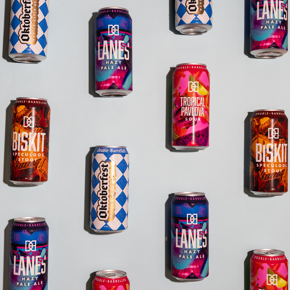Double-Barrelled began when our co-founders Mike & Luci created their first branded beer as a wedding favour back in 2015. Post wedding, they set off on a year long beer adventure, backpacking over 84,000 miles across the world to find inspiration, unique ingredients and burgeoning trends in the world of beer.